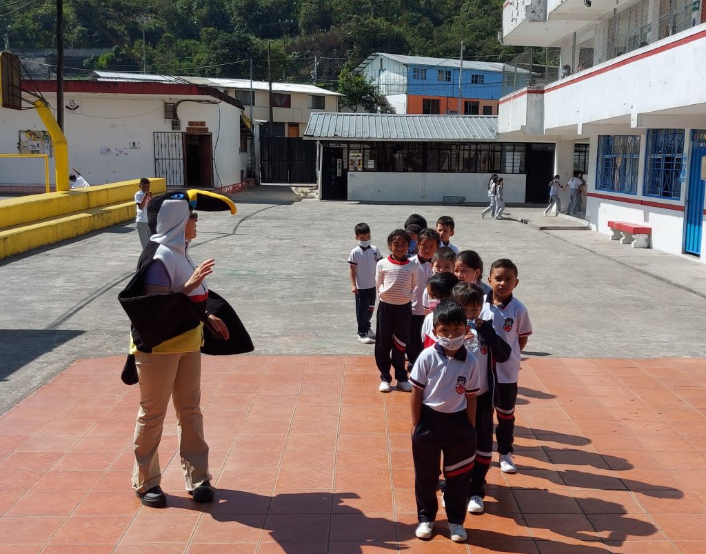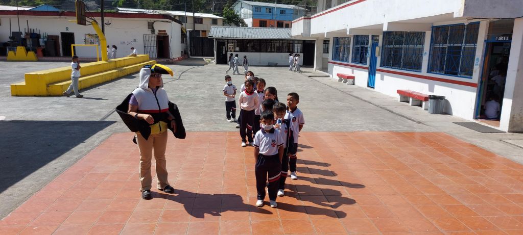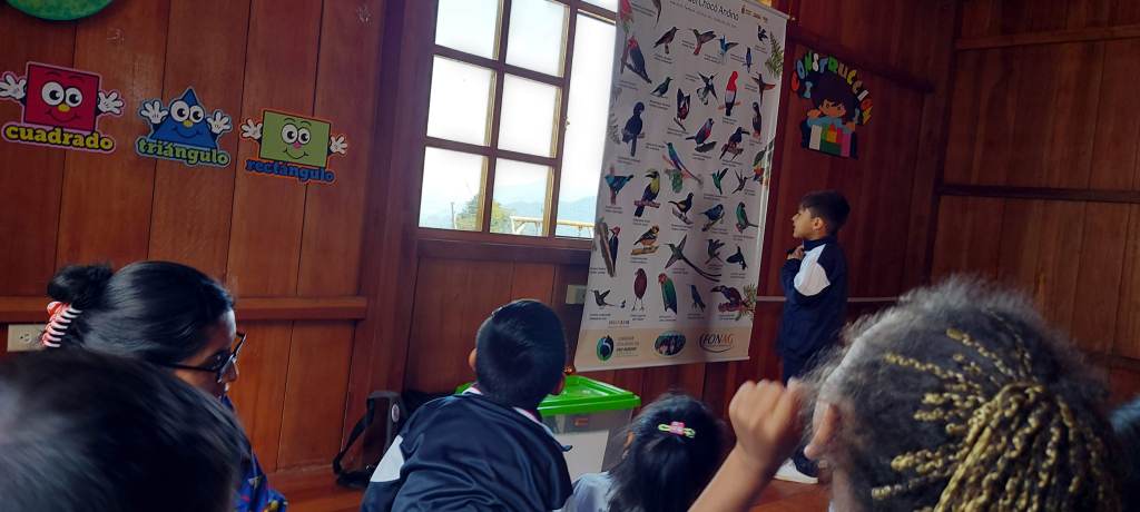 Observación e identificación de aves Mediante salidas de campo, o inclusive en la escuela o el parque de la parroquia, hacemos ejercicios prácticos de identificación de las aves locales así como texturas, colores y olores de la naturaleza. Esta herramienta nos sirve para empatizar con la vida silvestre, y facilita la comprensión del rol de las aves en el ecosistema.