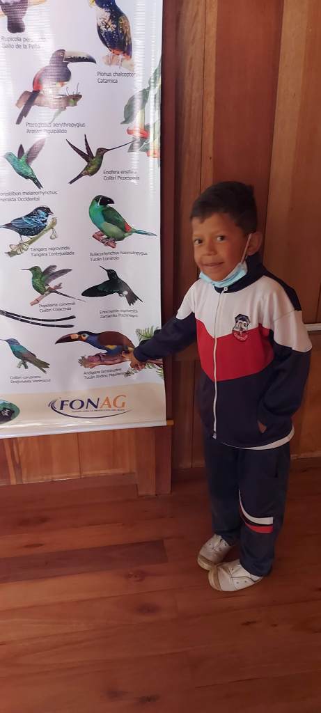 Christian Rosario, joven promotor comunitario del Parque Escuela Armadillos. Habitante de Nanegalito . Colabora con las actividades lúdicas para el conocimiento de las aves
